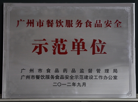 热烈祝贺我校荣获“广州市餐饮服务食品安全”示范单位