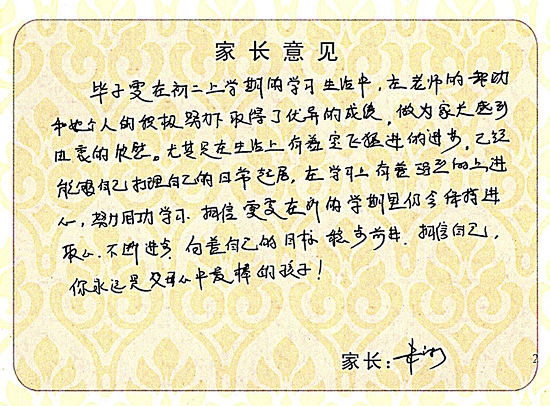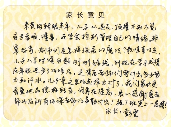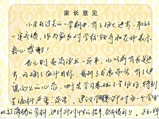 编者按:学校招办的同事们发现,越来越多的家长来电反映,他们听在黄广上学的亲朋好友介绍学校非常好,故而很感兴趣地咨询招生详情。孩子们在这里上学都有哪些变化呢?我们来看看寒假期间,家长在学生素质报告单中的反馈。
