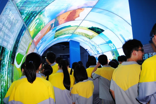 一楼大厅的立体沙盘为我们全方位展示了花都区的地形、地貌、山川、河流分布,上面标示了花都区所有气象观测站的具体方位,使同学们对花都区的概况及花都区的气象观测点有一个非常直观的了解。