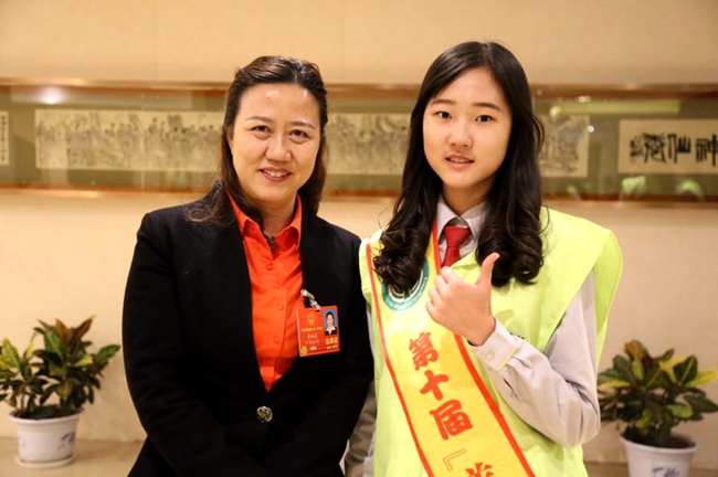 在今年全国“两会”召开期间,广州市黄广中学为特约的优秀学生记者代表之一,受邀远赴北京与全国人大代表进行面对面采访对话。在采访过程中,她自信从容、谈吐得体、见解深刻,让在场人员眼前一亮。