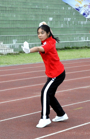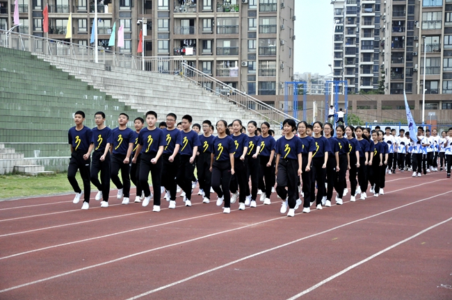 听!一声声的指令呐喊响彻运动场,整齐一致的利落步伐震撼人心……