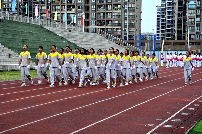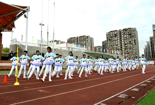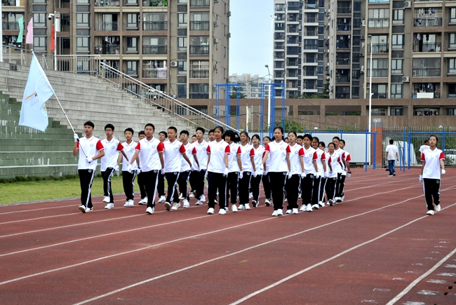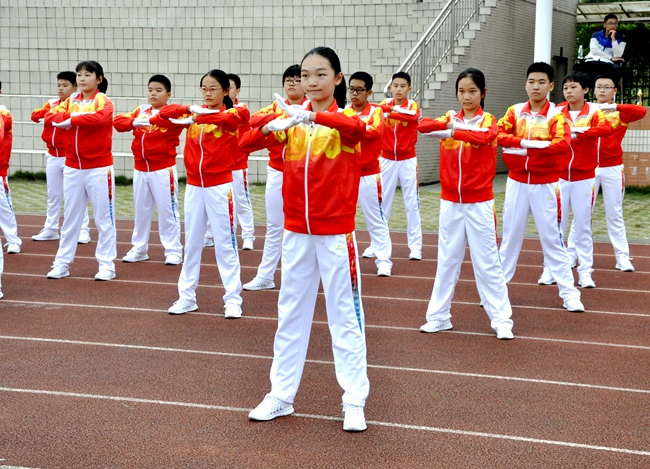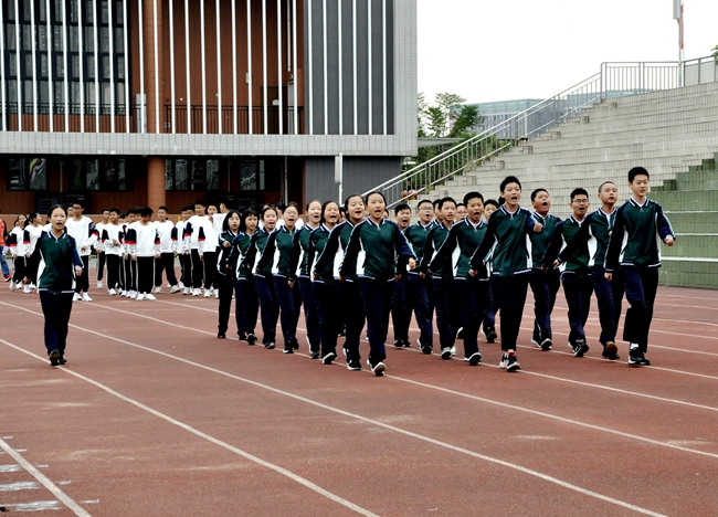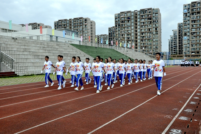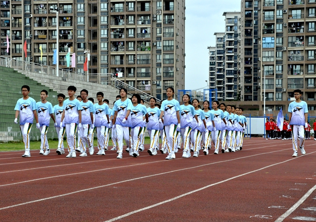 即使广播操音乐未响,随着来自不同班级的团队旗帜迎风怒放,一场班级学子之间的无形比拼,自方阵入赛场时已悄然拉开序幕。