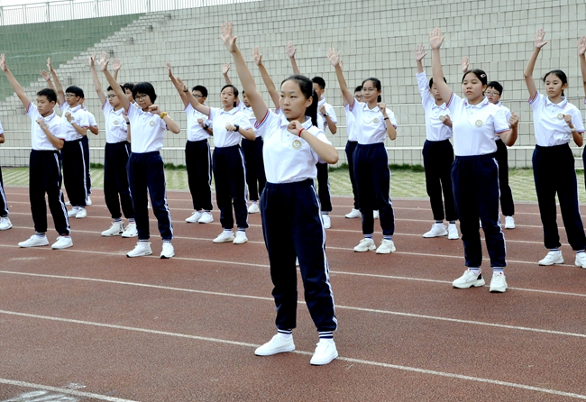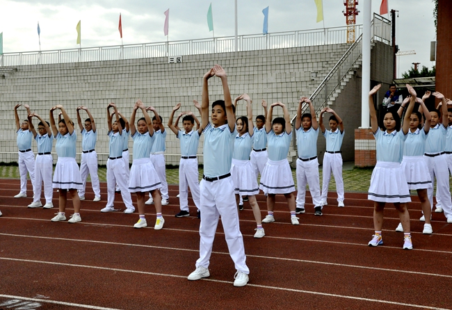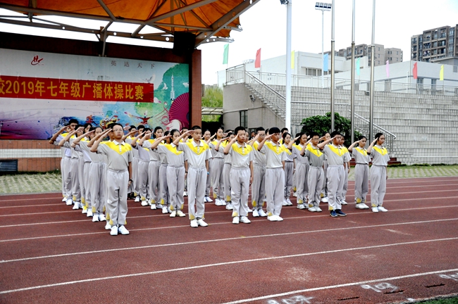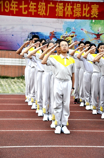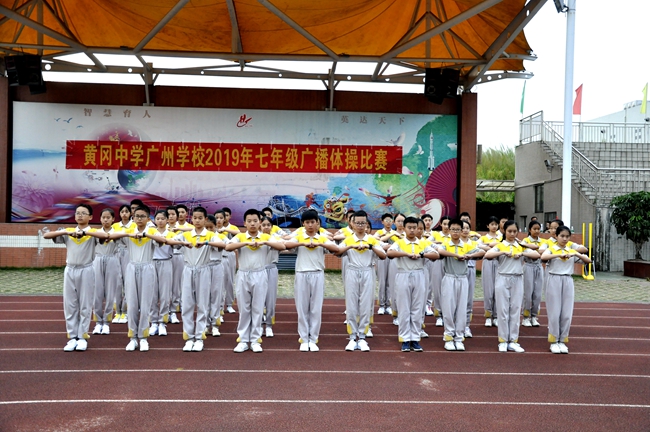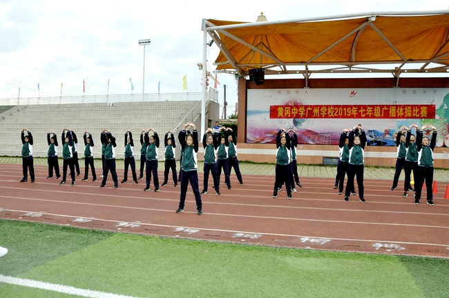 为了让学生通过趣味十足的班级竞技活动充实校园生活,在参与锻炼的过程中培养集体荣誉感、团队协作意识,促使学生在科学而适量的肢体活动中塑造形体美、健康美,展现出身为学生活力迸发、青春激扬的精神风貌,广州市黄广中学2019年七年级班级广播操大赛于近日在运动场顺利举办。