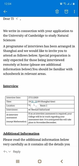 【剑桥你好】黄广两名同学获剑桥大学面试邀请