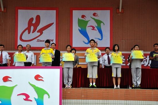 经过两天半的赛程,广州市黄广中学圆满结束。11月16日下午,运动会闭幕式按计划举行。学校领导范小星执行校长、陈明星副校长、江楚桥副校长,校长助理孙传华、蒋晓明、范小梁等出席了闭幕式。闭幕式由德育处杨文化副主任主持。 闭幕式上,本届运动会总裁判长谭金保宣布了运动会比赛成绩;校长助理孙传华宣读了“精神文明班级”获奖名单;校长助理蒋晓明宣读了“宣传报道先进班集体”获奖名单;团委书记熊建新宣读了“优秀广播员”和“优秀通讯员”获奖名单;艺体发展处副主任欧文瑞宣读了“优秀运动员”获奖名单。 本届运动会共有1230余名运动员参加了67个比赛项目的激烈角逐,共有536名运动员获得名次和奖励,有201名运动员获得金、银、铜奖牌,190名学生破37项校运会记录,共评比出16个“精神文明先进集体”,竞争出24个总分优胜集体,评出88名优秀运动员;共收到宣传稿件8000余篇,评选出16个通讯报道先进集体和44名通讯先进个人、4名优秀广播员和4名优秀学生会纪检干部。 在欢快的乐曲声中,学校领导分别为获奖班级和个人颁奖。 江楚桥副校长致闭幕词,他代表大会组委会向取得优异成绩的班级和个人表示诚挚的祝贺,向全体工作人员、所有参与本次赛事的师生表示衷心的感谢。他指出本届运动会以“青春、阳光、运动”为主题,突现了“运动性+趣味性”的特点,突现了“集体参与与个人展示”相结合,是一次“团结协作、共同超越与展示凝聚力”的盛会;是一次个性展示、挑战自我与增进友谊的盛会;是一次拼搏进取、群星闪耀与享受成功的盛会。本届运动会组织有力、秩序良好、热烈精彩、成绩斐然,取得了比赛成绩和精神文明双丰收。他希望全体师生把在本届运动会上展现出来的良好精神风貌贯彻到工作、学习和生活中去,再接再厉,团结一心,再创佳绩。 在热烈的掌声和欢呼声中,本届田径运动会胜利闭幕。
