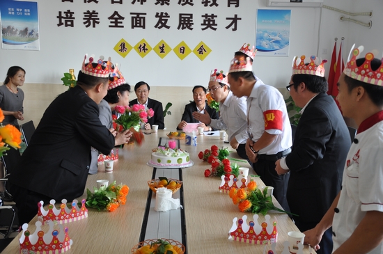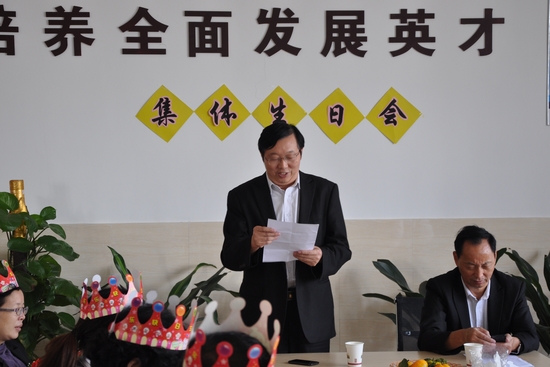 11月8日,广州市黄广中学12年11月集体生日会在1-204教工之家隆重举行。陈明星副校长、江楚桥副校长等领导出席了集体生日会。 生日会在一片歌声中由主持人陈静老师宣布开始,副校长陈明星宣读了集体生日寿星名单,工会委员和生活老师为各位寿星送上了生日帽和鲜花。副校长、校工会主席江楚桥代表校领导、董事会为各位寿星致寿词。 为了给各位寿星庆祝生日,工会委员、生活部主任有桂华特地准备了一个大蛋糕。寿星代表马玉谦老师和钟志强老师切开了象征着幸福甜蜜的蛋糕。教职员工们围坐在一起,尽情畅谈,分享着彼此的快乐。现场洋溢着家的温馨和快乐。 寿星代表叶松、黎婕老师、庄红才师傅分别代表各部门发表生日感言,感谢董事会,感谢工会为大家举办如此别开生面的集体生日会。寿星马玉谦老师的一首《祝你生日快乐》将大家的情绪调动了起来。紧接着生活部的老师集体演唱了一首《特别的爱给特别的你》,感染了在场的每一位。美女寿星黎婕老师的一首《追梦人》更是将集体生日会推向了高潮。 在大家欢快的歌声中,江楚桥副校长在大家推荐下非常绅士地邀请有桂华主任现场跳了一段舞蹈。飘逸的舞姿犹如漫天轻盈的雪花,博得满堂喝彩,使集体生日会再次掀起高潮。大家沉浸在幸福、欢乐、舒畅的氛围中,祝福声、欢笑声在大家脑海里久久回荡!