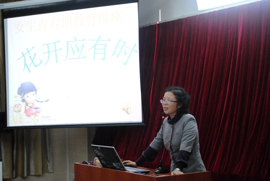针对女生青春期的心理和生理特点,及时化解女生青春期的思想问题。2012年10月31日晚和11月2日晨会,学校德育处组织初一、高一全体女生开展青春期知识专题讲座。 生物教师罗玲、生活部主任有桂华分别为初一、高一全体女生从青春期心理变化、生理卫生常识以及注意事项等进行了详细的讲解,就如何把握与异性交往的尺度、加强自我保护等问题做了深入浅出的探讨与分析,并传授了青春期女生应具备的个人修养、仪态、饮食健康、皮肤保养等常识。讲座精彩、生动,同学们认真投入,不时露出会心的笑容,会场气氛和谐而又温馨。 讲座不仅让女生们深入了解青春期生理、心理方面的知识,还增强了自尊、自爱、自重的意识,使她们树立了正确人生观念。