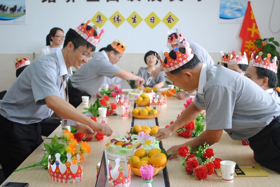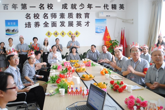 金秋十月,丹桂飘香,我校举办了10月份集体生日会。范小星校长、陈明星副校长、江楚桥副校长等领导出席了生日会。 生日会在欢歌笑语中开始了。校工会主席、副校长江楚桥宣读了寿星名单,新老员工在工会之家交流思想、沟通感情、畅想未来,充满节日的欢乐和家的温暧。 为了庆祝来自祖国各地寿星的生日,工会委员有桂华特地准备了两个大蛋糕,在场同事热情地唱起了生日歌,并一同切开了象征着幸福甜蜜的蛋糕。学校领导和校工会向寿星们送上生日贺卡。寿星代表高中部张志华老师,初中部罗先平、万新青老师以及生活老师谢吉红都纷纷发表生日感言,感谢董事会、校长室对员工付出的肯定,感恩领导和同事的深切关心,生日会上,最温馨的一幕莫过于刘水平老师给爱人谢吉红老师送上的鲜花和生日礼物,真情流露,感人肺腑。杨鹏程、王义芬夫妇的一首《知心爱人》把生日会推上了一个高潮,生日会在《众人划桨开大船》的歌声中走向了尾声, 寿星们纷纷表示,此次生日会温馨、温情,给远在异乡打拼的他们带来了家一般的温暖,大家会化关怀为动力,尽自己的最大努力,为争创一流南粤名校而努力工作。 范小星校长代表校领导讲话,范校长表示,广州市黄广中学家庭,她很高兴看到,随着学校品牌的快速发展,越来越多的优秀人才加入到这个大家庭中,也衷心祝福各位寿星家庭幸福,生日快乐。陈明星副校长也给予了最诚挚的祝福,祝福大家的友情如高山流水般长远。