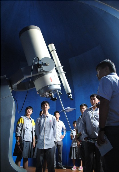 10月22日,我校组织国际部高一全体学生到花都气象观测站参观学习,丰富学生的课外知识。 同学们在气象站专业讲师的带领下,兴奋地走进期待已久的花都气象观测站。一进院门,迎面就是室外气象广场,它的设计灵感来自于中国古代圭表,巧妙利用建筑物柱子正午的日影长度准确看出节令。 一楼大厅的立体沙盘为我们全方位展示了花都地理分布。最有意思的是气象科普厅,从了解气象观测发展的历史文化开始,再经雷电通道、模拟天气预报、热岛效应等体验区个个精彩纷呈。而“怒发冲冠”、“数字星球”区域则形象的为我们诠释了气象与科技的发展。 最后讲师神秘的将我们带到顶楼,带我们领略镇馆之宝——天文望远镜。天文望远镜的出现,给人类戴上了“太空眼”,使人类探索宇宙无尽奥秘成为可能。 短短两个小时,我们学习到了很多气象、天文领域的知识,每个同学获益匪浅,深刻感受到人类科技发展的快速,以及人类智慧的深邃。作为祖国的下一代,我们必须付诸努力,未来才能创造出更好的科技。