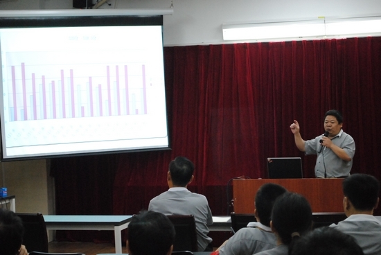 10月18日晚上6点30分,我校初中部八年级第一次月考质量分析会在一号教学楼503室举行。 会议由年级主任朱迎春老师主持。副校长陈明星、校长助理教务主任蒋晓明出席,全体八年级任课教师参加了会议。 会议首先进行了八年级第一次月考质量分析。语文备课组长陶玉萍老师、数学备课组长彭建新老师、英语备课组长瞿丽娅老师、物理备课组长杨勇刚老师、政治备课组长唐荣华老师,分别对本次月考的试卷编制、学生答题、考试成绩做了分析,并分别提出今后教学的具体措施和方法。随后年级主任朱迎春老师就八年级学生的身心特点,及开学以来年级组的工作进行了小结,对表现突出的部分老师提出了表扬,将本次月考的成绩与上学年七年级期末考试成绩进行了对比分析,对今后年级组的教育教学工作提出一些建议和要求,他激励与会人员鼓足干劲,负起责任,深入实际,总结经验,再创佳绩。 校长助理蒋晓明主任就本次月考的组织、网上评卷及试卷难易度做了说明,通过条形统计图,直观形象的对上一学年两次期末考试成绩和本次月考成绩的分段情况进行了对比分析,对在这次月考中取得优异成绩的教师和班级进行了表扬,对存在的问题提出改进意见。他最后说:“成绩的差异只是过去,只要我们齐心协作,持之以恒,成绩肯定会有一个大的飞跃。我们要理直气壮搞课改,扎扎实实抓常规,不遗余力提质量,兢兢业业讲奉献。” 陈明星副校长对本次月考质量分析会进行了简短地小结。他强调我们要发挥备课组的统筹和引领作用,一步一个脚印地扎实工作,要提高学生学习的积极性和主动性,不要挤占学生的自修和休息时间,要在提高课堂效率,打造高效课堂上下功夫,把培优辅困工作落到实处。最后陈校长为老师们提出了两点建议:一是备课组要研究怎样把每节课5分钟的当堂测试程序化?二是要多与学生交心谈心,培养学生学习兴趣,让学生亲其师,行其道。 这次月考质量分析会,气氛和谐,节奏明快,是一次鼓舞斗志的会议。它预示着我们八年级组在接下来的时间里将再接再厉,再创佳绩。、