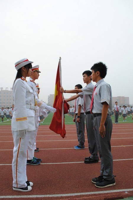 10月15日周一,广州市黄广中学仪式,全校师生和五星红旗一起见证了另一个庄严的时刻——我校新老国旗班交接仪式。 早晨6时50分,在我校田径场,首届国旗班队员把鲜红的五星红旗交到了新国旗班队员手中,新国旗班全体队员以标准而规范的动作完成了首次升国旗任务,同时也预示了新一届国旗班即将继往开来,把国旗班的光荣事业发扬光大,将国旗班的伟大精神薪火相传!接着,敖道威同学代表新国旗班队员发言。他表示,参加国旗班升旗使自己陶冶了爱国主义情操,受到了终身难忘的教育。这是一项无上光荣的使命,大家一定要像爱惜自己的生命一样去爱惜国旗,将升旗进行到底。 最后,校团委熊建新书记讲话,他说,我校首届国旗班从组建以来,已经走过了1年多的时间。在指导老师余绍青老师的带领下,队员们不畏酷暑严寒,勇于奉献,刻苦训练,以一颗赤诚之心守护着国旗,以严谨认真的态度完成着每一次任务,得到了全校师生的一致好评。新一届的国旗班走上了工作岗位,在此也希望新队员们能够继承和发扬国旗班的优良传统和作风,牢记自己的责任和使命,认真履行工作职责,不辜负学校领导、老师和同学们的期望,以更加出色的表现和更加优异的成绩来完成学校交给的各项任务。之后宣布了新一届国旗班队员名单并为首届国旗班队员和指导老师颁发荣誉证书。