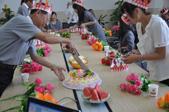 集体生日会在彼此的祝福、交流和情感的交融中进行着,学校领导和校工会向寿星们送上写有个性祝福词和领导签名的生日贺卡,大家一起分享蛋糕,同时一起分享喜悦与快乐、分享温馨和感动、分享思想和感悟,合唱生日歌将大家对寿星们的祝福用声音与心愿传送着,将生日会推向更高潮。在充满温情的歌声中我们的生日会走向了尾声,但是那份感动,却永存在了我们每一个人的心里。