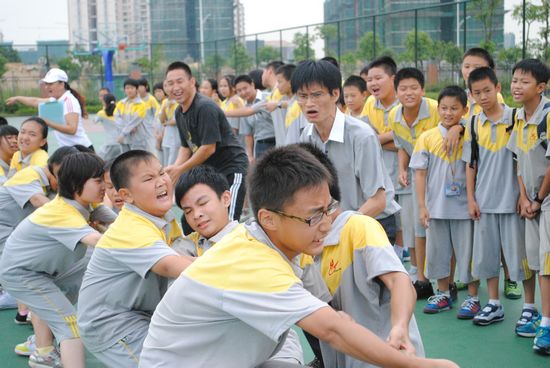 2012年9月25日广州市黄广中学赛。本次比赛共有16个班参加,以淘汰制方式进行比赛,各班选出十名男生十名女生参赛,分别以三局两胜决定胜负。在比赛中学校德育处、教务处、艺体发展处、年级组积极组织,公平、公正裁判。比赛场上同学们活力四射,氛围热烈,赛场上队员们以饱满的热情全身心的投入到比赛中,场外同学和老师们欢呼、加油。经过一节课的紧张激烈的比赛,依次决出前八名进入星期五的半决赛,赛后学校将对获奖班级给予奖励。 本次拔河比赛,使七年级广大同学在比赛中增强了班集体的凝聚力、亲和力,促进了同学们之间的友情,使大家真正的体会到团结的力量。