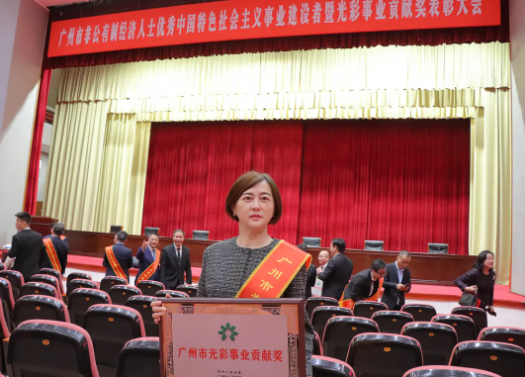 黄广教育集团董事长梁润佳出席会议,并接受与会领导颁发的“广州市光彩事业贡献奖”荣誉牌匾。