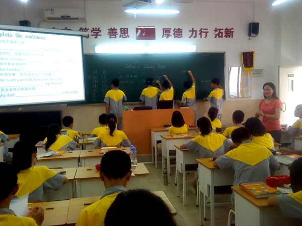 ——记初中英语组集体听课和备课 9月13日星期四上午7点45分,初中英语组全体老师聆听我校高级英语教师瞿丽娅在八(8)班上的示范课。参加听课的还有我校副校长、英语特级教师陈明星,英语高级教师杨文化,以及教务处主任蒋晓明。 瞿老师的语法课生动精彩、贴近生活,让听课老师觉得语法教学不是枯燥无味的,学生学习语法不是负担,而是一种享受。40分钟的时间不知不觉就过去了。下课铃声响起,全体听课老师离开教室,又立刻走进七(15)班教室,欣赏张金蕊老师的示范课。讲台上的张老师从容不迫,面带微笑,让所有学生和听课老师觉得如沐春风。张老师将全班同学分成两组,采取互相竞争的形式,充分利用这堂阅读课,全班同学积极参与,课堂气氛非常活跃。听课结束后,陈校长组织听课老师开始评课。两位上课的老师首先说了上课思路,其他老师纷纷发表自己的看法,品评这两节课的亮点与不足之处。每个老师的发言都有自己独到的见解,有些还就这两堂课提出了一些建议。同样作为听课老师,我觉得他们的发言都非常中肯,说出了我想说、但是又说不出来的感受,确实让我受益匪浅。评课结束之后,全体听课老师又欣赏了高中部邓靖荣老师的示范课。 随后,七年级英语组进行了集体备课。主讲人为陈小东老师。陈老师初步设想了第二单元的课时分布、梳理了重难点以及学生需要达到的知识、能力和情感目标。陈老师思路清晰,为我们的教学提供了重要的参考。 此次集体听课、评课和备课,对于青年教师来讲就如举行了一次营养大餐,使我在学校浓厚的教研氛围中真正实现个人成长。至此我感受最大的是,一堂好的英语课是师生互动的艺术。而如何把握师生互动的度,这是我应该着重思考的问题。
