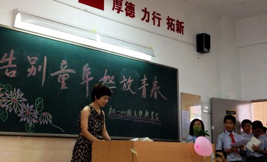 五月的鲜花是如此的灿烂,童年终于在这灿烂的五月,划上了一个休止符。青春的大门悄然敞开,梦想的舞台正在拉开期盼已久的大幕。 6月1日下午,仅是两点多一点的时间,就有大批家长陆续涌入我校。每个班级每个角落都布置得精致温馨,三五成群的讨论,热火朝天的景象随处可见,欢乐的笑声洋溢在热闹的校园里。 我抬头望望湛蓝的苍穹,心里不仅升起一丝暖意,我们排练得那么辛苦,等的不就是这一刻,让父母看到更好的自己么?再一低头,看见爸爸妈妈正在朝着这边走来,与之跟随的还有外公、两个表弟,我欣喜极了…… 三点,家长们都坐满了课室的椅子,有的还带着稚气未脱的小孩。家长们坐在围成半弧形状的凳子上,空出中间的一片地方让我们表演。 首先是主持人黄浩贤和姜明蕙出场,在激昂欢迎乐曲声中,他们迈着坚定的步伐走向舞台中央;接着是班委会代表致辞欢迎家长;随后是集体竖笛合奏《沧海一声笑》,这是我们欢迎家长的表演曲目。体育老师特地给我们排了一个双环队形,在体育委员刘香江的一声令下,然后我们集体面向家长演奏起来。我使劲捏了旁边钱琦乐的手,发现她跟我一样,手心也在冒汗…… “呼----”台下传来一片热烈的掌声,家长们都不由自主露出会心的微笑,而我们得到了这莫大的鼓励后,一个个也由唯唯诺诺变成了昂首挺胸,得意地退场了。 最让我觉得精彩的是那些从七年级上学期时伴随我们成长的照片。我从来没有想过张老师是这么细心地保存着我们成长的点点滴滴。从军训、开学典礼到校运会,再到艺术节,每张相片我们都不陌生,都足以让我们回想起那些流逝的日子。不知为何,我们的眼睛竟有了湿润的感觉,家长们也无一不专心致致地盯着屏幕,他们含辛茹苦地培养十三、四年,看到每一个孩子的笑脸,那定格的瞬间化作了感恩的永恒。 成长小品、单口相声、歌曲清唱、英语接龙、集体宣誓、诗歌朗诵,每一个节目都是出自我们的精心准备,每一个节目都是我们综合素质的展现,真可谓异彩纷呈、高潮迭起…… 最后一个环节,最温馨最感人。父母为我们摘下胸前的红领巾,并互赠书信,我们正式向美丽的童年告别。然后,副班长捧来学校为我们精心准备的大蛋糕。每位同学点上一只蜡烛,并许下诺言。此时此刻,我感觉到无数的目光在注视着我们,在关心着我们。我们知道在青春的路上,一定会遇到风雨,一定会荆棘丛生,但我们一定会永不言弃。 当我还沉浸在浪漫的思绪中的时候,“女儿,给你!”老妈从精巧的手提包中拿出一封信给我。拆开信,仔细看了一遍,才知道,这是父母写给我的一封信,信中记录了我成长过程中难忘而温馨的往事,我没有说话,也不知道怎么说,只是把它揣在怀里,突然感觉自己长大了。 十四岁,“告别童年,怒放青春”的主题教育会已经完美落幕,它不仅坚定了我们未来的前进方向,也拉近了亲子之间的相互距离。走出校门时,一条宽阔的大马路伸向远方,路的尽头太阳已徐徐落下。眺望地平线,我知道明天太阳就会升起……
