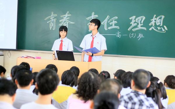2012年5月5日下午,高一(5)班全体学生、家长、老师欢聚一堂,举办了以“青春·责任·理想”为主题的家长会,取得了圆满成功。 2:45,伴随着各位家长的到场,班长梁志安同学以清新、明快的语言为家长们介绍了班级的发展情况,展示了我班班训“耕耘分秒,勤奋造就天才;努力拼搏,实力铸就辉煌”。接着又由我们的副班长兼学习委员邓建蓉同学总结了班级学习情况及期中考试的成绩,同时强调“分数不是唯一”,来为成绩较差的同学打气,鼓舞同学们不必灰心,继续努力。 在家长会的第三项议程上,我们自己制作了PPT为家长和同学们展示了一个励志视频。这个短片的内容大致是:一位黑人运动健将由于训练强度过大,导致大腿肌肉拉伤,为了参加奥运会,他做了4次手术。然而正式比赛中,他的大腿肌肉再次拉伤。他强忍剧痛,最后还是以顽强的意志完成了全程比赛。尽管他最后一个到达终点,但还是赢得了所有人的掌声和尊重。故事启示我们:“可以接受失败,但不能接受没有奋斗过的自己!”“战胜别人,是人生的赢家;战胜自己,便是命运的强者!” 看完视频,便是各位同学勉励自己的“凡人小语”。这些“凡人小语”形式各种各样,有的令人忍俊不禁,有的使人点头赞许。 接下来便是我们班同学的课外生活照片,课室的、宿舍的、校园的,每张图片都充满了快乐,显示出我们暖意融融、和谐有爱的同学情谊。 此后是学生代表林雅怡发言,她作了题为“感恩父母”的精彩演讲,感动了家长,也感动了场上的每一位同学。 邓建蓉爸爸和郑子旻妈妈的发言,给我们留下了深刻的印象。他们与家长们分享了自己家庭教育的心得体会,向大家介绍了一些个人家教方面的经验以及困惑,并对我们提出了殷切的希望。听完家长的发言,邓建蓉同学按耐不住激动的心情,饱含热泪向大家即兴倾诉了自己的内心感受。场面感动人心,掌声更为激烈。 最后,我们班全体同学为家长带来了丰富的才艺表演:全班同学朗诵了诗歌《致橡树》;游振同学深情的朗诵了诗歌《娘》;全班同学发自内心的演唱歌曲《想自由》。整个家长会在雷鸣般的掌声中完美谢幕。
