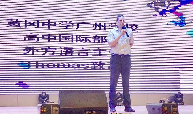 国际部外方语言主管Mr.Thomas 也作为国际部外教团队发言,深度剖析黄广外教师资水平及外方团队在国际课程教学、研究、开拓等方面作出的创新与探究,详细讲解黄广国际教育团队下一阶段的规划目标,向学生及家长展示黄广国际精英教育队伍追求卓越、永不止步的想法与决心。