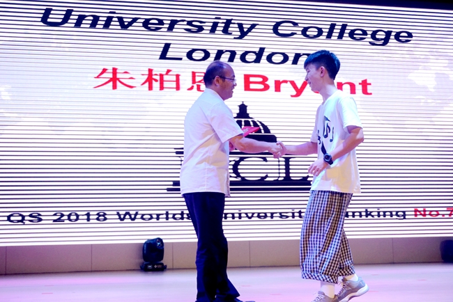 其中11位成功获得世界前10超级名校录取的优秀毕业生代表盛装亲临大会现场,在学弟学妹及各界家长的热烈掌声中接受母校特别颁发嘉奖的万元奖学鼓励金。