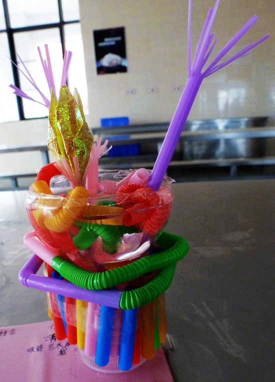 比赛于8点正式开始。同学们利用废报纸、泡沫、吸管、饮料瓶、纸杯、铅笔屑、牛奶盒等废弃物品,充分发挥自己的想象,进行精心的构思和制作,使这些被遗弃的垃圾“脱胎换骨”,蜕变成了生活中实用的“宝贝”。
