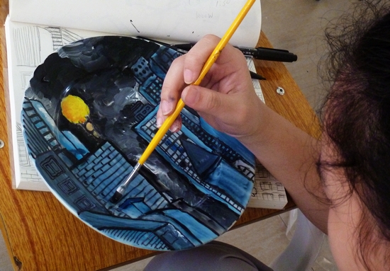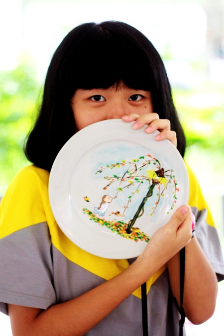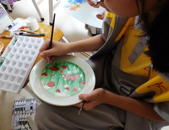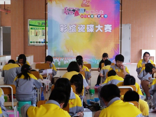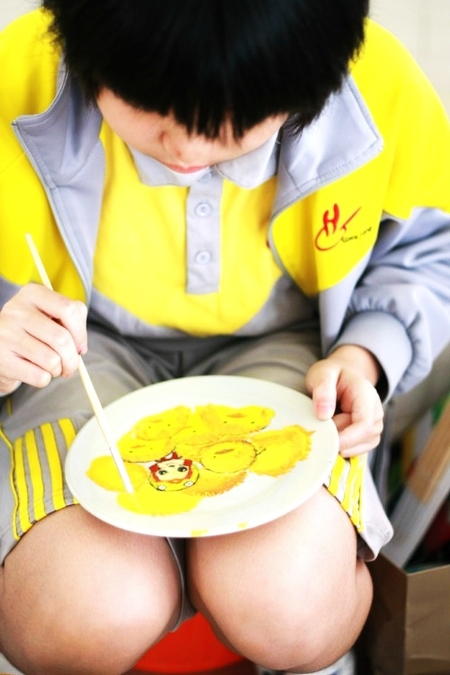 5月5日上午,在一楼架空层,我校84位小画家们齐聚一起,拉开了五色斑斓的现场彩绘创意大比拼:只见,笔尖上浓郁鲜艳的颜料不断地流淌:有的热情可爱,有的淡雅清新,有的神秘深邃,有的寓意深刻……引得旁边观赏的同学和家长们连连称赞。没多久,一个个白净素雅的瓷碟变成了一件件精美的彩色艺术品,小画家们笑了,他们用画笔绘出了自己心中的色彩,用画笔彰显了个性,用画笔激扬着青春。