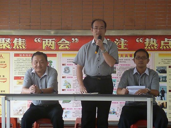 8月28日,我校高二年级开展了以“新学期,新起点,新要求”为主题的新学期入学教育大会。分管高中部的孙传华副校长、德育处杨文化主任出席了会议,年级主任曾璐老师和全体高二班主任、学生参加了会议。会议由校学生会主席冯楚楚同学主持。