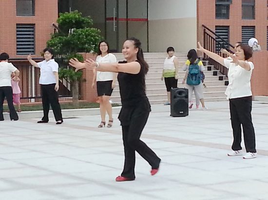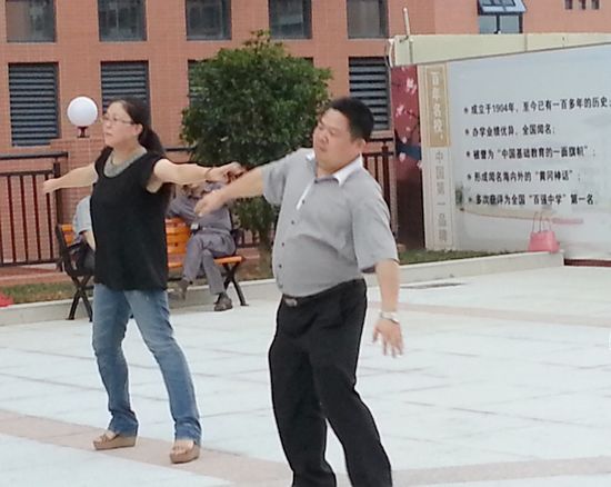 下课钟声响起,广场音乐奏响,老师们轻松地漫步聚集,一扫投入工作一天的疲劳,扭扭屁股,动动腰,看,文化广场沸腾了!