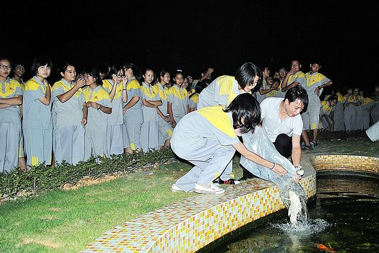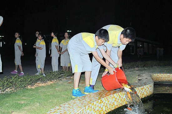 清秋十月,心旷神怡。在经历了欢快的国庆小长假之后,为了丰富并充实我校八年级同学的课余生活,陶冶情操,启迪智慧,培养同学们的责任感和奉献精神,经德育处倡议,在八年级全体班主任的积极宣传下,我校八年级于10月7日傍晚举行了放鱼养鱼志愿服务活动启动仪式。活动现场,霓虹闪烁,流水潺潺,浪花朵朵,笑声阵阵,好不热闹。