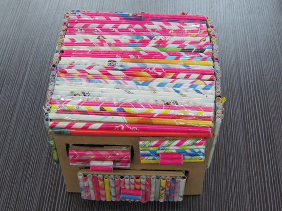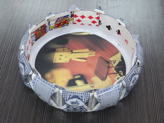 同学们利用生活中的废旧材料进行创造,制作成有用的工艺品、生活用品,例如扑克牌制作的糖果盒、戴眼镜的小熊、塑料瓶做的奖杯,还有废旧报纸制作的汉堡包、手缝布偶、编花提篮,用餐盒制作的礼帽……参赛作品形式多样,构思奇妙,引来过往师生的驻足赏评。