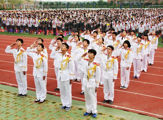 随着振奋人心的音乐节奏,孙副校长宣布表彰大会正式开始。精神抖擞的国旗班同学护送五星红旗进入操场,在庄严肃穆的注目下,五星红旗冉冉升起。