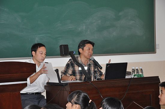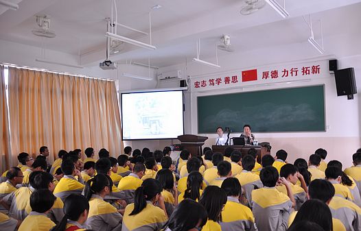 2013年10月25日,周五第七节课后,高一年级全体学生在高中部校长孙传华、艺体中心主任黄丽丽、高一年级主任杨红霞的组织下聚集在东区1-201课室,开启了一段充满趣味的艺术启蒙之旅。参与讲座的学生整齐端坐,全神贯注地聆听着来自广州美术学院的孙黎教授讲述其艺术探索之路的段段故事,孙教授散发的艺术气息令我们向往,他的学画经历和艺术心得更给同学们很大的启发和震撼。