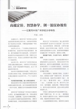 广州市黄广中学很多学校20年才能达到的办学成绩,其内在奥秘在很多家长和教育界人士心中都是一个奇迹,笔者和本刊将持续关注和解读其发展之路和奥秘所在。