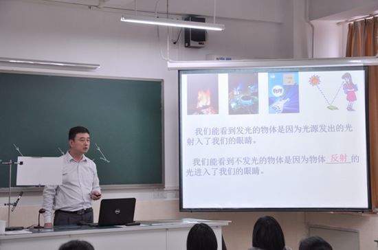 11月14日下午,花都区物理教研会在我校实验楼举行,来自全区多学校的近百位老师参加了这次活动,我校八年级物理组王尚金老师还藉此机会为大家送上了一堂精彩纷呈的光学观摩课。