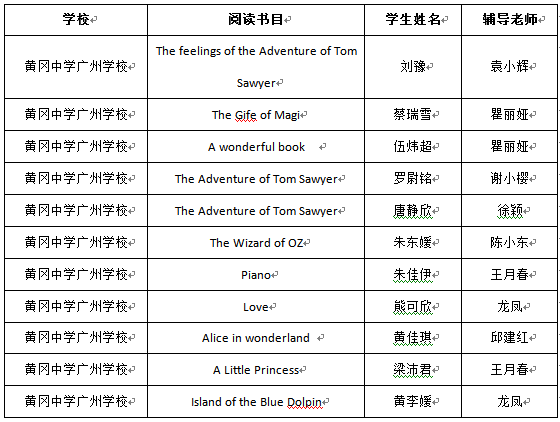 附表:花都区初中英语“课外阅读之星”
