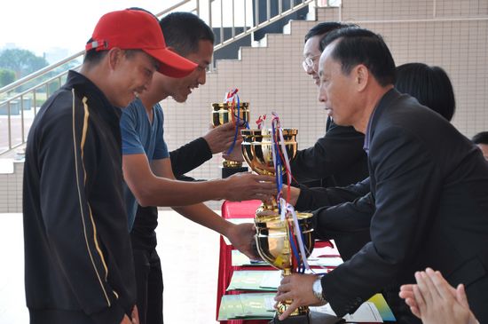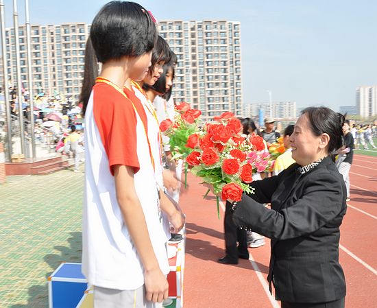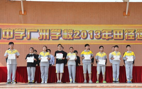 2013年11月22日中午,随着最后一项4x400接力赛的顺利结束,我校2013年田径运动会的所有赛事圆满完成。范小星校长、陈明星副校长、江楚桥副校长等学校领导为本届运动会上表现突出的班级与个人颁发奖项。