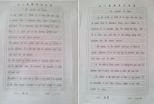 初一年级学生的书写作品在公布展览中受到全体师生的一致好评。经过一系列严格评选,本次英语书法比赛的一、二、三等奖最终诞生(下方附有获奖名单)。