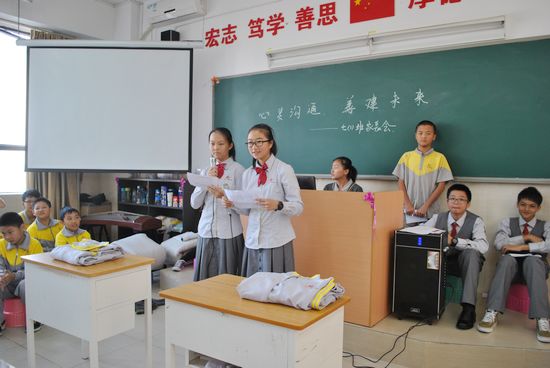 2013年11月23日上午9时半,我校七年级16个班召开了以“心灵沟通,善建未来”为主题的学生、家长、学校三位一体的家长会。