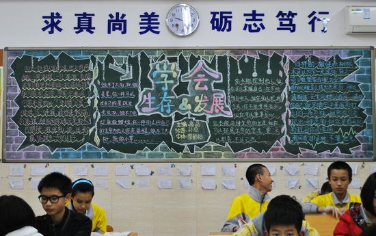 根据德育处工作安排,团委组织了第四期主题为“学会生存与发展”的黑板报评比活动,团委张书记以及德育干事毕老师带领校学生会宣传部参加了评比打分活动。