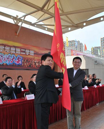 最后,游烈峰书记、范小星校长分别向高三、初三团队授旗,祝愿毕业班师生们在中考、高考中旗开得胜。
