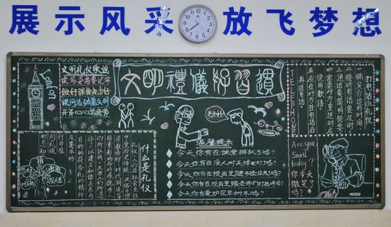 此次黑板报针对低、高年级设置不同主题,起始年级的主题为“文礼好习惯”,其他年级主题为“激发学习动力”。在本次黑板报评比活动中,各班均展现了良好的班级风貌,漂亮精致的黑板报凝聚了学生小宇宙中的奇思妙想,无论是从内容、版面、文字、插图都极具创意,展示出较高的水平。