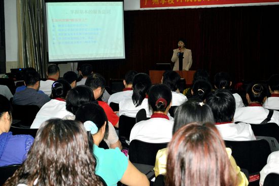 有主任详细讲解了服务的概念、优质服务的重要性及学校对员工的素质要求。有主任认为优质的服务主要体现在:1、拥有优良的服务态度,做事认真负责、细致周到、积极主动、文明礼貌、热情耐心,坚决杜绝推脱、搪塞、冷漠、无所谓的态度;2、拥有坚定的服务信念,针对师生的特殊情况,灵活处理,完善服务;3、拥有快捷的服务效率,熟练掌握各项操作流程,快而不乱,反应敏捷。