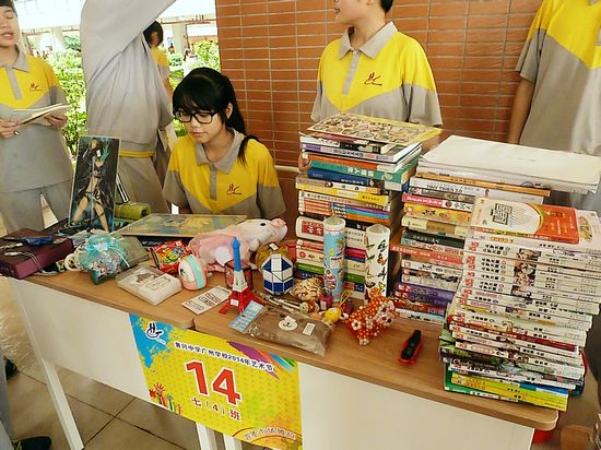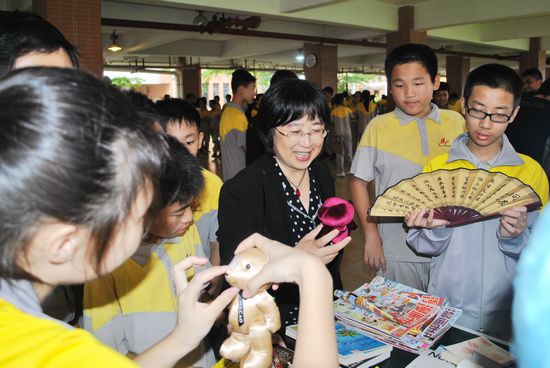 身着校服的“小商贩”们一边灵活地走街串巷,一边高声疾呼,目标顾客——学生、老师及外宾们纷纷走近一个个各具特色的小摊档,有的细心浏览各色各样的小商品,拽紧钱包,生怕一不留神就失去控制;有的客比手画脚,跟小老板们卖力地讨价还价,成交后高兴地抱着战利品走向下一摊,寻觅新目标。