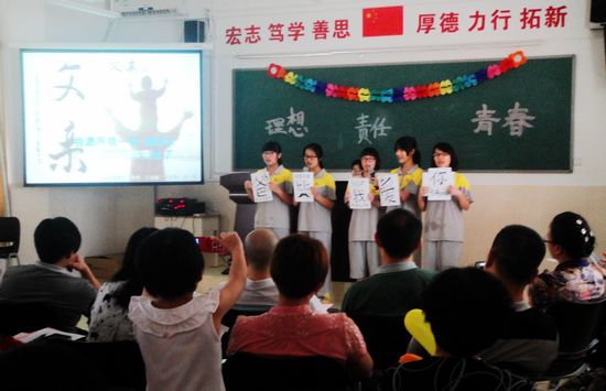 漫步高一年级各个课室,映入眼帘的是彩带和气球装点的喜气洋洋的会场,所有的家长都热情洋溢地欣赏孩子们的精彩表演——从孩子们自己制作的展示个性、憧憬未来的个人主页,到展示孩子们多彩多姿校园生活的一个个画面;从孩子们深情告白、感恩父母的一封封书信,到孩子们青涩美妙歌声舞步的一个个节目;从孩子们激情充沛的青春致辞到孩子们激越坚定的青春誓言,自始至终吸引着家长们的眼球,牵动着着家长们的心灵。