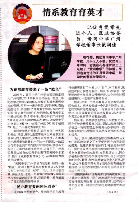 1、“两会”期间,花都区委主管的《今日花都》报专访我校梁润佳董事长,对梁董事长的教育强国情怀、学校卓越的办学成绩等进行报道。