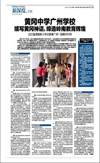 一、2014年中考和高考创造广州版“黄广神话”,以优异教学成绩仅仅三年跻身广州一流学校行列