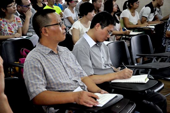 培训课中,老师们全神贯注于精辟的教育理念讲解,认真地对要点作笔录。