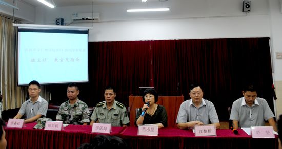 8月19日晚19:30,我校在西区1-503会议室召开八、九年级及高二年级班主任与军训教官见面会。范小星执行校长、江楚桥副校长、德育处舒坚副主任、团委张森林书记和承训单位中国人民解放军防化团谢偌翰上尉、陈后帆上尉出席会议,对70余位参训班级的班主任和教官等就本次军训任务、宗旨及注意事项等作出指示。