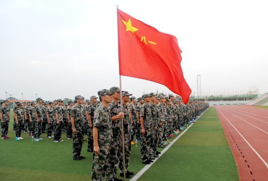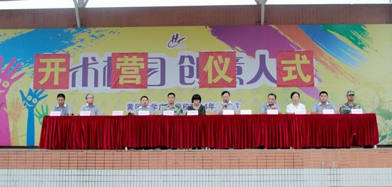 8月21日清晨6:50,广州市黄广中学年级学生军训开营式在田径场隆重举行。