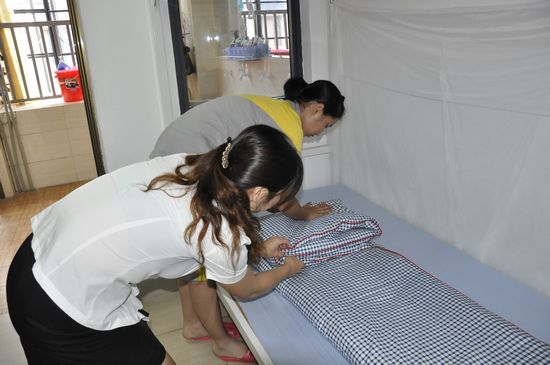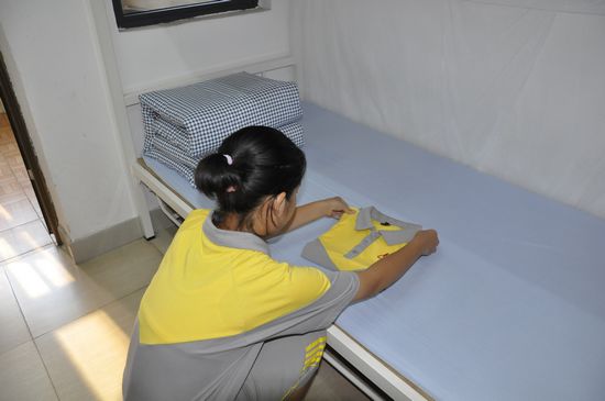 走进温馨而清新的宿舍,整齐有致的床铺、干净平整的被褥皆出自学生灵巧的双手,熟练的折被叠衣手法中看不出入学一周的新生本应表现的生疏,生活导师细致的指导与温暖的关爱令很多从未离家的初一学生很快适应校园寄宿生活。
