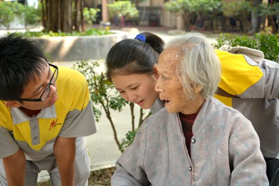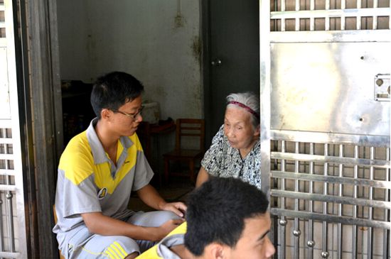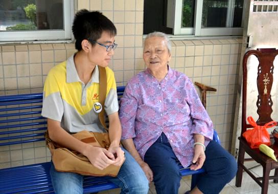 院内的老人家们大多年过六旬,用爱和他们亲切交流,以真心为老人们驱除岁月袭来的孤独,纵使年龄相隔半个世纪也无碍于交心互动。